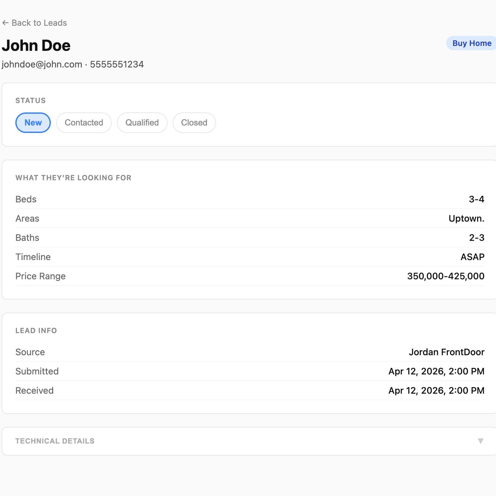 HomeHeading gives agents a clean, fast, branded page that captures prospect intent and routes it into a secure backend dashboard—without needing a custom website build.